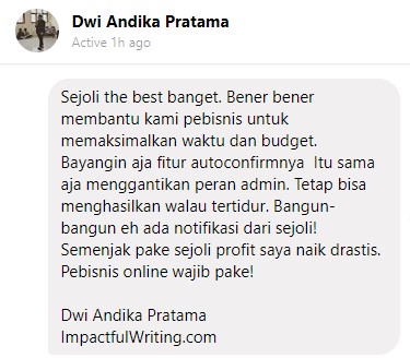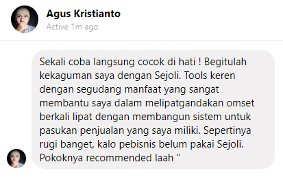 Dan semoga, hadirnya SEJOLI ini bisa membantu meningkatkan Omset Bisnis Anda, sehingga Penghasilan Anda pun ikut Meningkat, dan Hutang Anda pun cepat lunas. Aamiin…