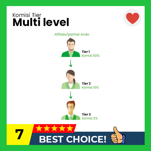 Anda bisa menambahkan multi tier komisi untuk jaringan Anda sesuai dengan yang di inginkan, mulai dari 1 level kedalaman hingga berapapun kedalaman yang Anda butuhkan. Cocok untuk Anda yang ingin mengembangkan sistem jaringan komisi berjenjang. Dapatkan lebih banyak Affiliate dengan penawaran komisi yang menarik seperti ini.