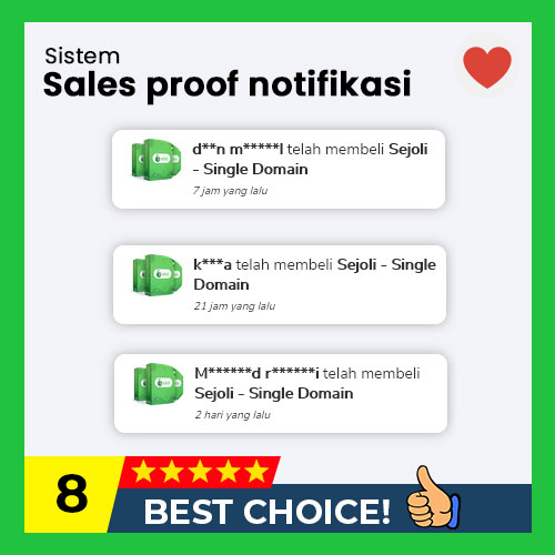 Anda bisa menambahkan pop up notifikasi sales di web landing page utama ataupun di halaman checkout. Dengan fitur ini akan menambah trust untuk calon pembeli terhadap toko online Anda.